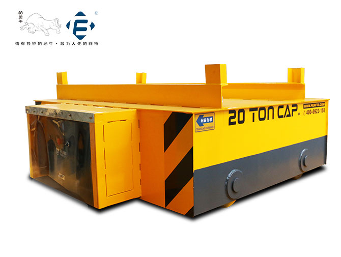 客戶購買軌道平車是運行機械和電器零配件進入成品庫使用,由于幾個廠房之間,起重機麻煩,所以采用無軌平車